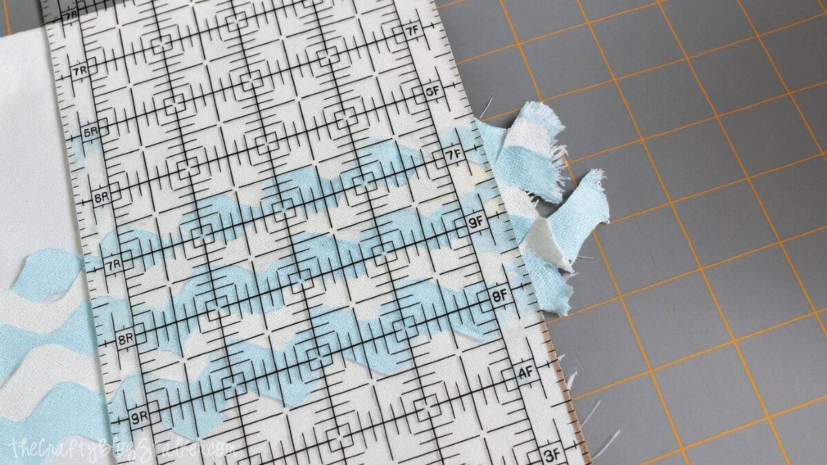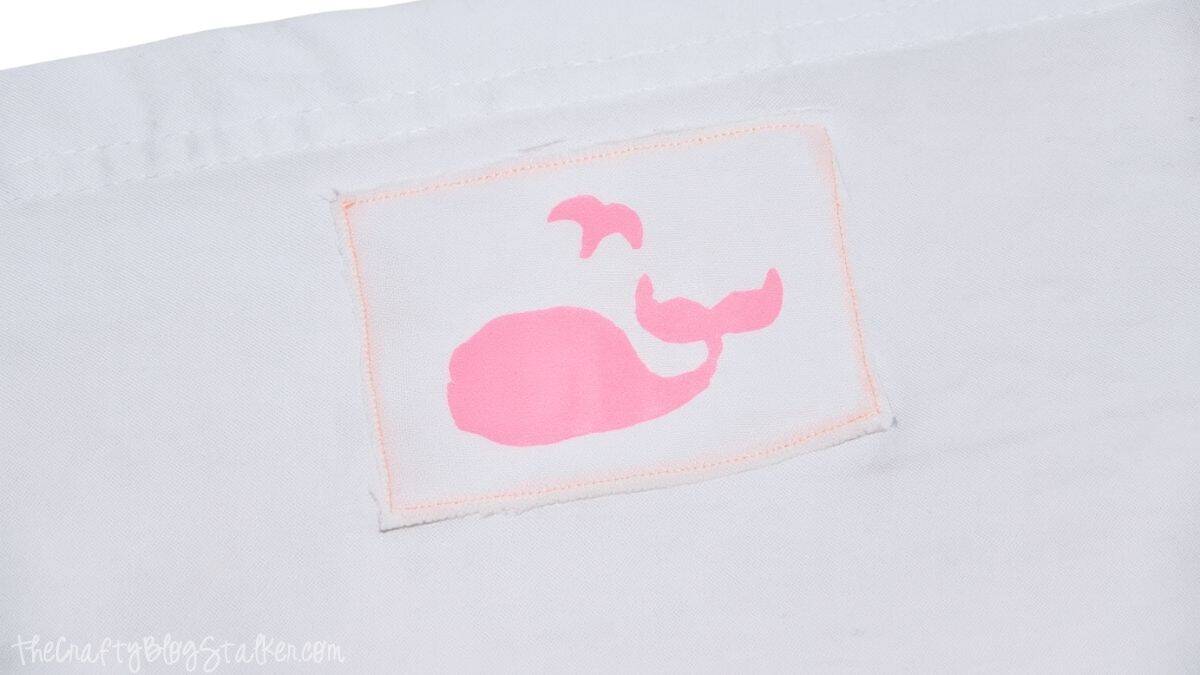 Attach the stencil to a piece of white fabric scrap and draw the whale using a fabric paint marker. Allow it to dry completely.