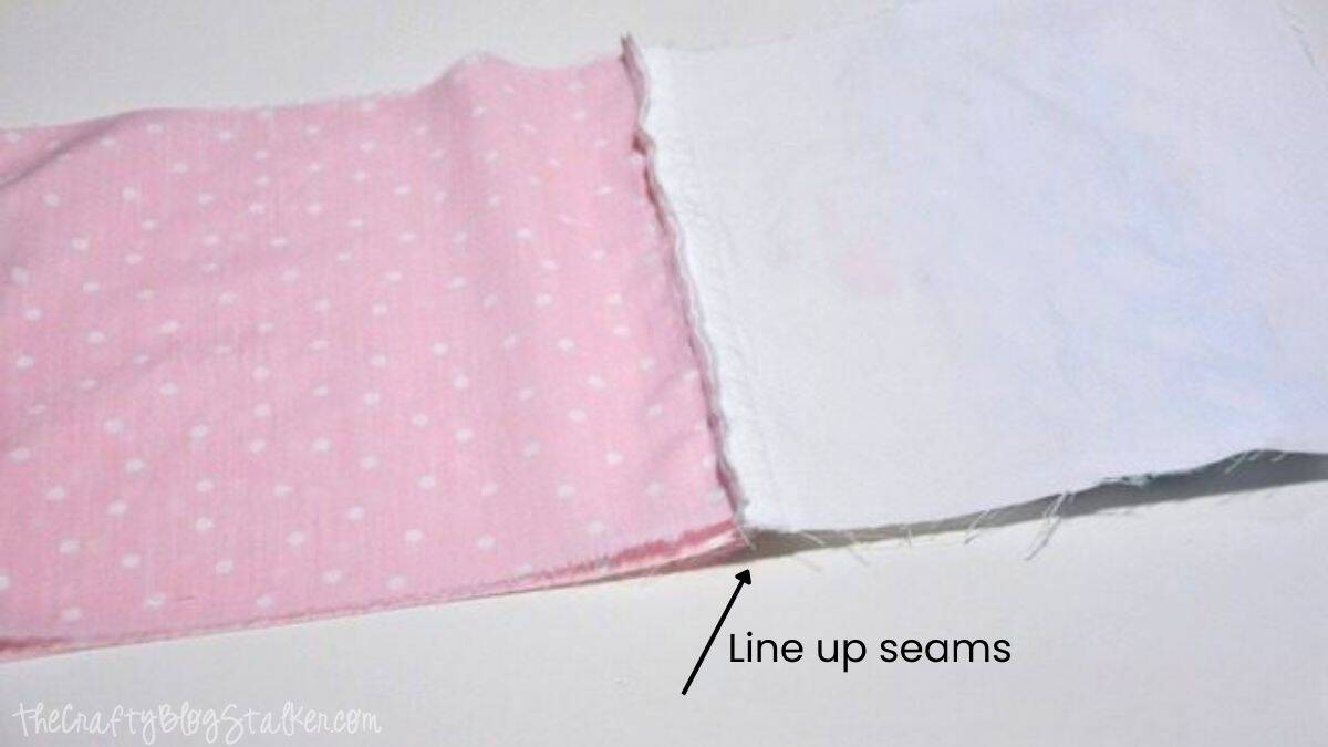 Take both sections and place them with the right sides facing each other. The seams should align properly.